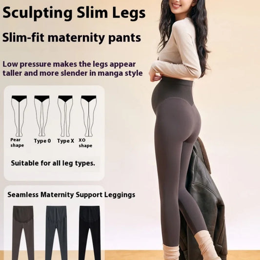 Plus Size Winter Fleece-Lined Maternity Leggings